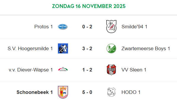 Zondag 16 november 2025: Schoonebeek – HODO 5 – 0 (1-0)