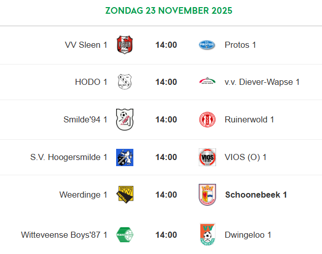 Na het sterke optreden bij Sleen vorige week, kreeg Schoonebeek deze middag het goed draaiende HODO op bezoek. Zowel Schoonebeek als HODO doen dit seizoen mee voor de bovenste plaatsen. Na een gelijk opgaande eerste helft, legde Schoonebeek in de tweede HODO volledig over knie en won dan ook terecht met 5-0.