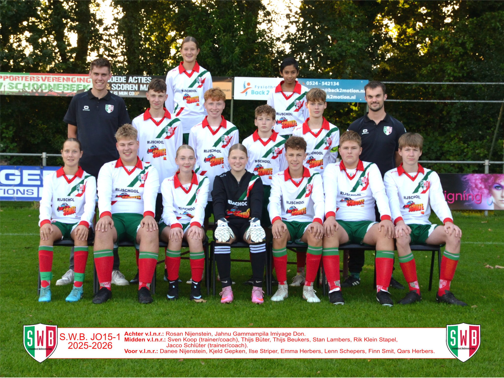 De JO15-1 speelt onder de vlag van SWB. Tenuesponsoren zijn Gankema en Autorijschool Schulte.